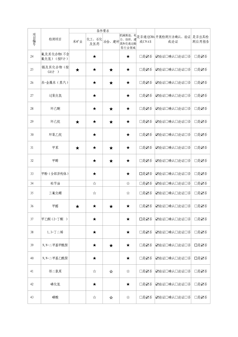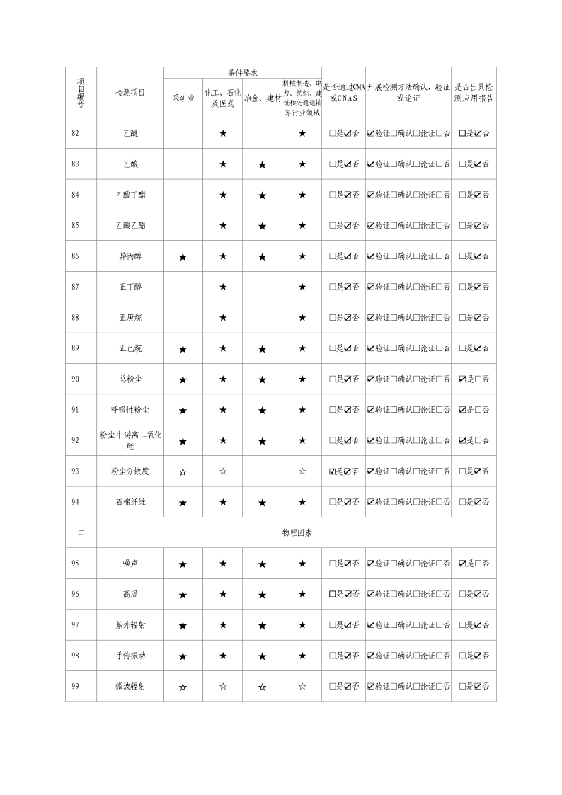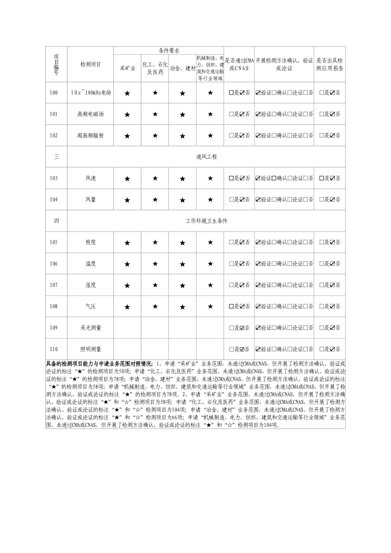 2024年職業(yè)衛(wèi)生技術(shù)服務(wù)機(jī)構(gòu)資質(zhì)證書及職業(yè)病危害因素檢測(cè)項(xiàng)目清單
